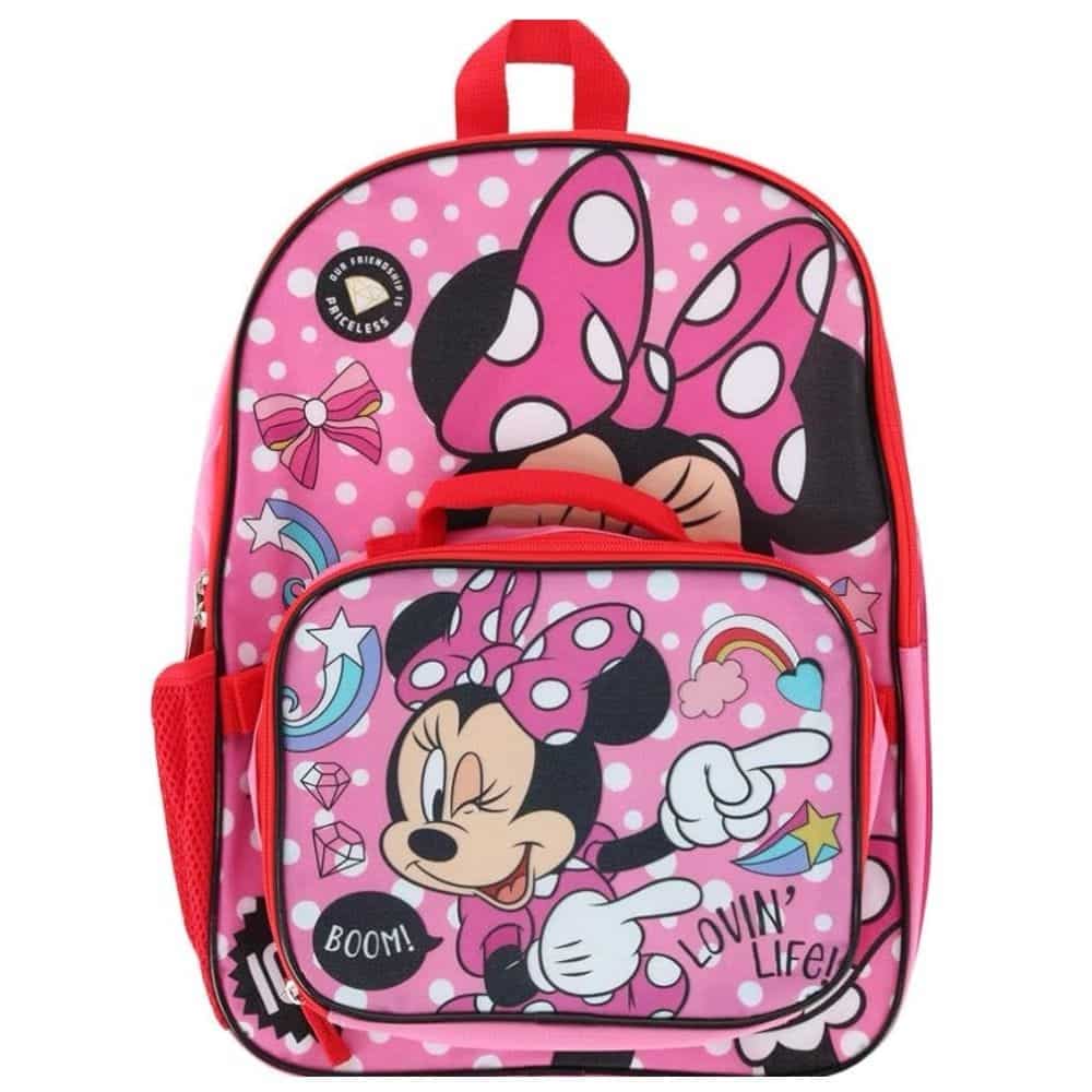 Disney Minnie Mouse Girls Cartoon Cute Pink School Backpack Lunch Box Book Bag